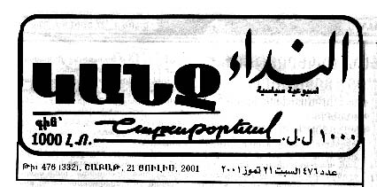 PublicationsSource : M. Meguerditch BOULDOUKIAN, 2001 Code téléphonique du Liban : 961 ; ne pas composer le premier chiffre (0) du numéro de téléphone